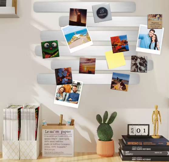 Indien u geen koelkast, afzuigkap, memobord of iets anders magnetisch heeft, dan biedt deze magnetische strip de ideale oplossing om uw mooiste herinneringen tot leven te brengen. U kunt de strip op elke gewenste plek in huis of ergens anders hangen.